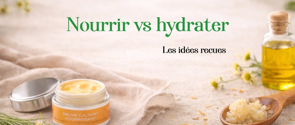 Ce que vous devez retenir le plus est que l'essentielle pour une peau sèche est de la nourrir. Et hydrater et nourrir sont deux actions totalement différentes. Une peau sèche manque surtout de lipides, pas seulement d’eau. Les crèmes hydratantes sont parfois insuffisantes, car l’eau ne reste pas dans la peau sans protection. La solution durable est souvent : boire suffisamment d'eau, éviter les produits agressifs, nourrir avec un baume naturel riche en huiles végétales et beurres bruts. C'est une base saine et qui a prouvé son efficacité.