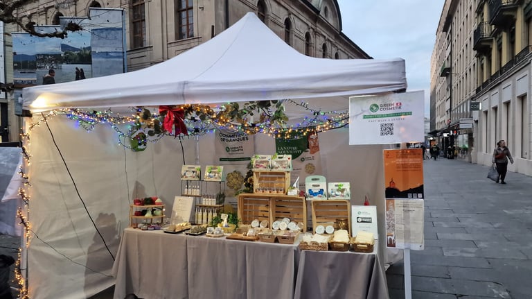Dans un sublime, nous avons exposés nos cosmétiques, dans l'espace du Jardin Anglais à Genève, non loin de notre atelier production.